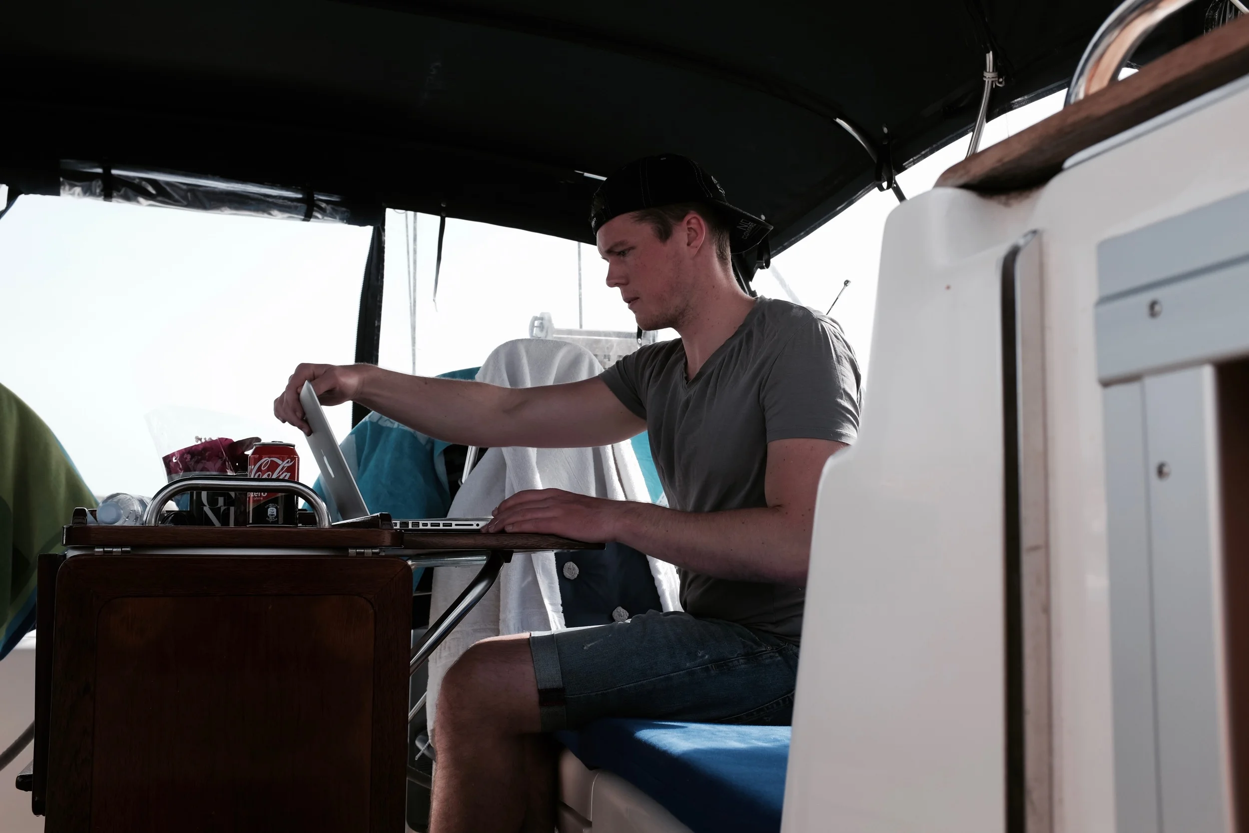 Seglingen är mycket avslappnad. Eftersom att passadvinden sällan ändrar riktning nämnvärt och vindstyrkan är genomgående stabil behöver segelsättningen sällan justeras mer än vid skymningen, då vi minskar segel för att inte överraskas av plötsliga squalls under natten, samt när vi sätter mer segel igen i gryningen. Autopiloten gör att vi bara behöver styra när vi känner för det, och utöver det är det inte mycket vi är tvungna att göra. Morgon och kväll vittjar vi fiskereven som oftast ligger ute efter båten, och somliga kvällar blir det filmvisning med gemensam middag, medans vi andra kvällar tar det mer avslappnat.